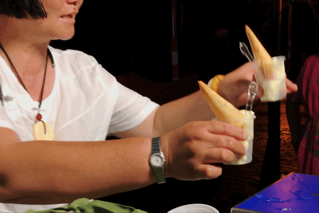The ice cream cone is not big, 10 yuan a piece. There are also round-box-packed pure ice creams sold there. The locals call the Jiushan ice cream the Wenzhou-made “Haagen-Dazs”. The taste of the Jiushan ice cream is not unfamiliar, which always could wake up your memory. This cool, sweet and pure milk flavor must be purified. Without any additive or thickener, so it will be thawed very fast. What’s more, the taste is so refreshing.Speaking of the egg-cones, they look like the usual ones from the semblance, but tastes better than them. It’s fresh, crispy, even with a little smell of sesame and eggs.