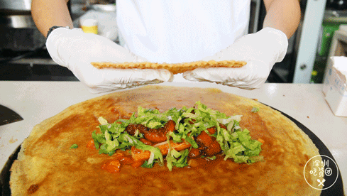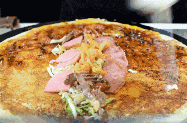 It is usually added with egg liquid, sausage, bacon, lettuce and other materials according to personal preference, and then applied with a thick sauce, sprinkled with some chopped green onion. The making process takes a few minutes.
