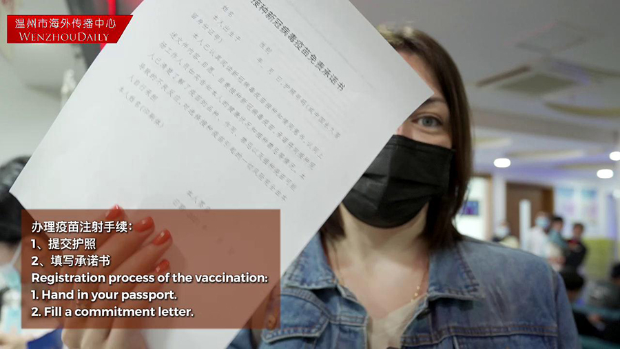 According to the staff, foreign friends in Wenzhou are required to provide personal passports and fill in a letter of commitment for vaccination. While waiting in line for vaccination, you must wear masks and keep a distance of at least one meter from others. After the vaccination, you will still be asked to rest in the observation area for 30 minutes. Then you’re allowed to leave in case of feeling no discomfort. Within 3 days after vaccination, please abstain from strenuous exercise, drinking alcohol and eating spicy food.