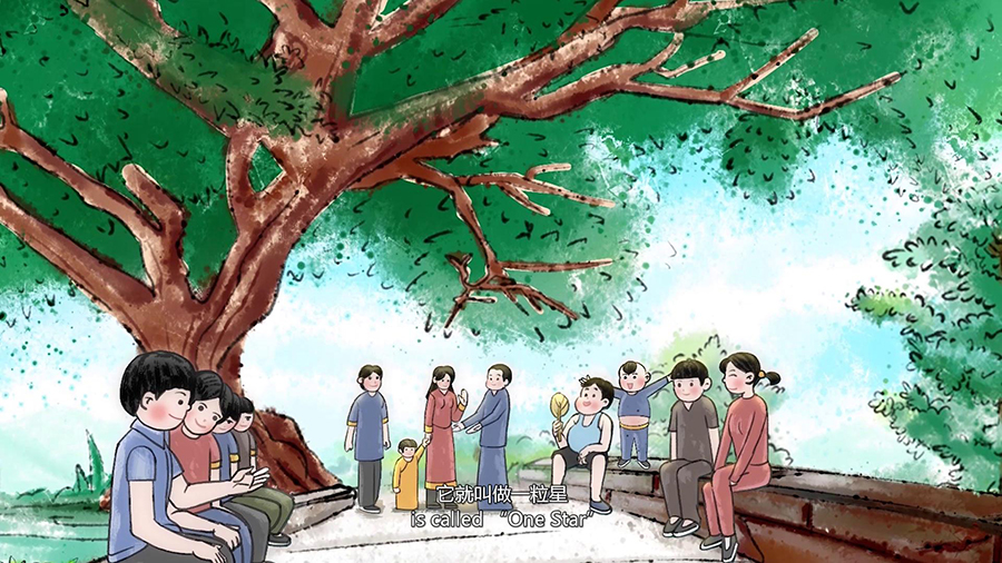 The video "One Star, One Town", which is produced by the Publicity Department of the CPC Cangnan County Committee (Cangnan County Cyberspace Administration) and filmed by the Wenzhou Overseas Media Center, is one of many nursery rhymes that have been circulating among the local population for generations. Using summer nights, starry sky, and people enjoying the cool as the narrative background, it anthropomorphizes the common poultry or animals that are often seen by kids such as chickens, ducks, monkeys and others. In the nursery rhyme, they cooperate together and work harmoniously in an orderly manner to complete a wedding scene. This nursery rhyme has an integral storyline and vivid characters.