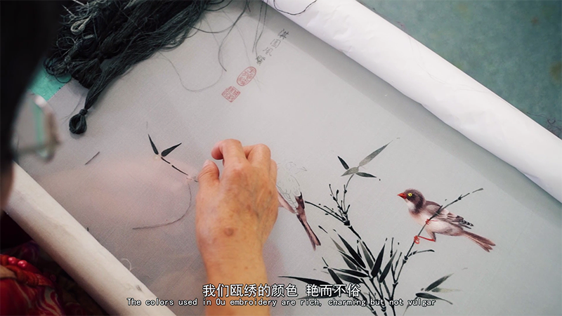 As a national intangible cultural heritage, Ou embroidery has a long history. It originated in the Tang Dynasty and prevailed in the Ming and Qing dynasties. There was an old saying in Wenzhou: “Girls in 11 or 12 are taught to comb hairs, in 13 or 14 are taught to embroider by their mothers.” It implies that Ou embroidery was well-accepted among the girls in ancient times. In the video, Shi Chengquan, the inheritor of national intangible cultural heritage - Ou embroidery, displayed her exquisite Ou embroidery works, including the vivid lion embroidery with heterochromous colors and different patterns, and the flexible and elegant Chinese style “Lotus & Ink”embroidery. The colors used in Ou embroidery are rich, charming but not vulgar. The choice of color can bring a balance in color, and offer a sense of visual satisfaction for us. Ms.Shi said there were few subjects adopted in Ou embroidery works in the past, so she decided to make innovations. She combined Ou embroidery with oil painting, traditional Chinese painting, photography, and sketching to enrich Ou embroidery subjects and meet the market demand. I hope people from all countries can enjoy the charm of Ou Embroidery.