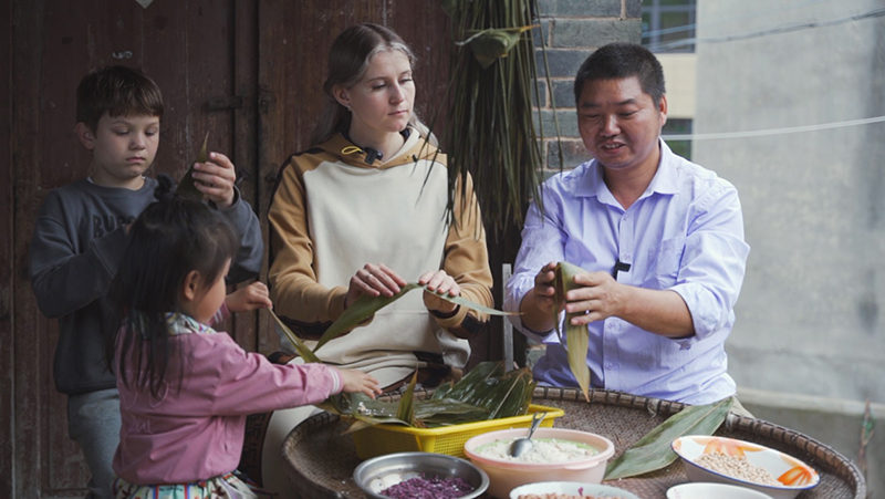 During the video-shooting, Anna and her family experienced the entire set of traditional festival customs including pick reed leaves, make rice ash, wrap Zongzi, and hang calamus at the door. She was amazed by the traditional Chinese festival customs and culture, hailing it a trip of "Lucheng surprise".