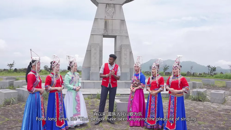 Warsame’s experience tour on “She” ethnic minority culture begins with learning to sing “She” people’s nursery rhymes and having bamboo pole dance. Warsame says that the beautiful lyrics, melodious tunes, and cheerful and rhythmic dance steps really make him completely immersed in this colorful culture. He truly appreciates “She” people’s hospitable life attitude which is characterized with singing and dancing. "I’m so lucky to have an opportunity to come into “She” ethnic minority township, experiencing its charming culture. It’s absolutely a precious asset. I yearn for such a beautiful and warm life that is full of singing!"