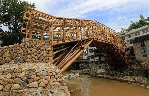 In the cluster of Pinnacles in Taishun, Wenzhou, more than 30 ancient lounge bridges left by the ancient dynasties Tang, Song, Ming and Qing are known as the “living fossils” among the world bridges. The wooden arch lounge bridges, with its ingenious and beautiful structural modality, reproduces the image of Hong Bridge in the famous painting