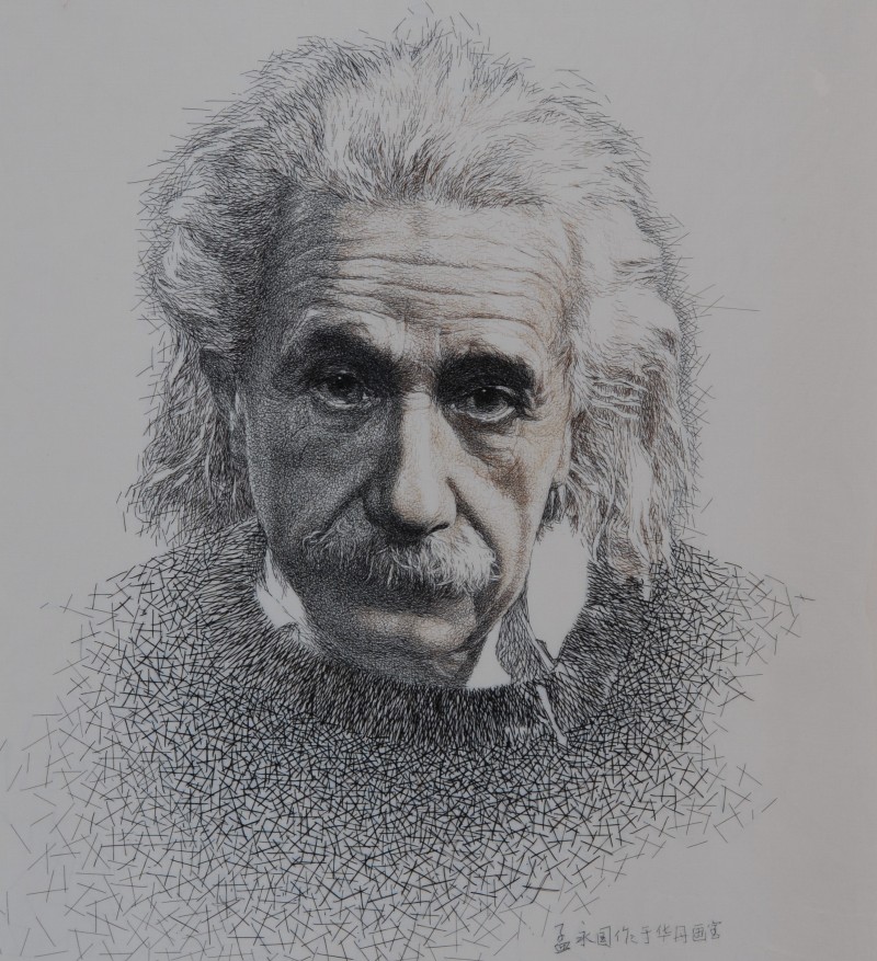 After successfully creating the first colored embroidery work, Meng Yongguo continued to pick colored hair embroidery as his own research direction, which ushered in the diversified development of Wenzhou Hair Embroidery. Meng Yongguo profoundly felt that the traditional hair embroidery method was too simple to achieve the desired effect that he wanted during his creation of "Einstein". He tentatively applied the "disordered needle method" created by the modern embroidery craftsman Yang Shouyu into his hair embroidery work. Afterwards, Meng Yongguo created a new "bottom-color complement method" to make up for the limitations of the colored hair embroidery. In addition, he also innovated the tool of hair embroidery and improved the decoration method of the hair embroidery work.