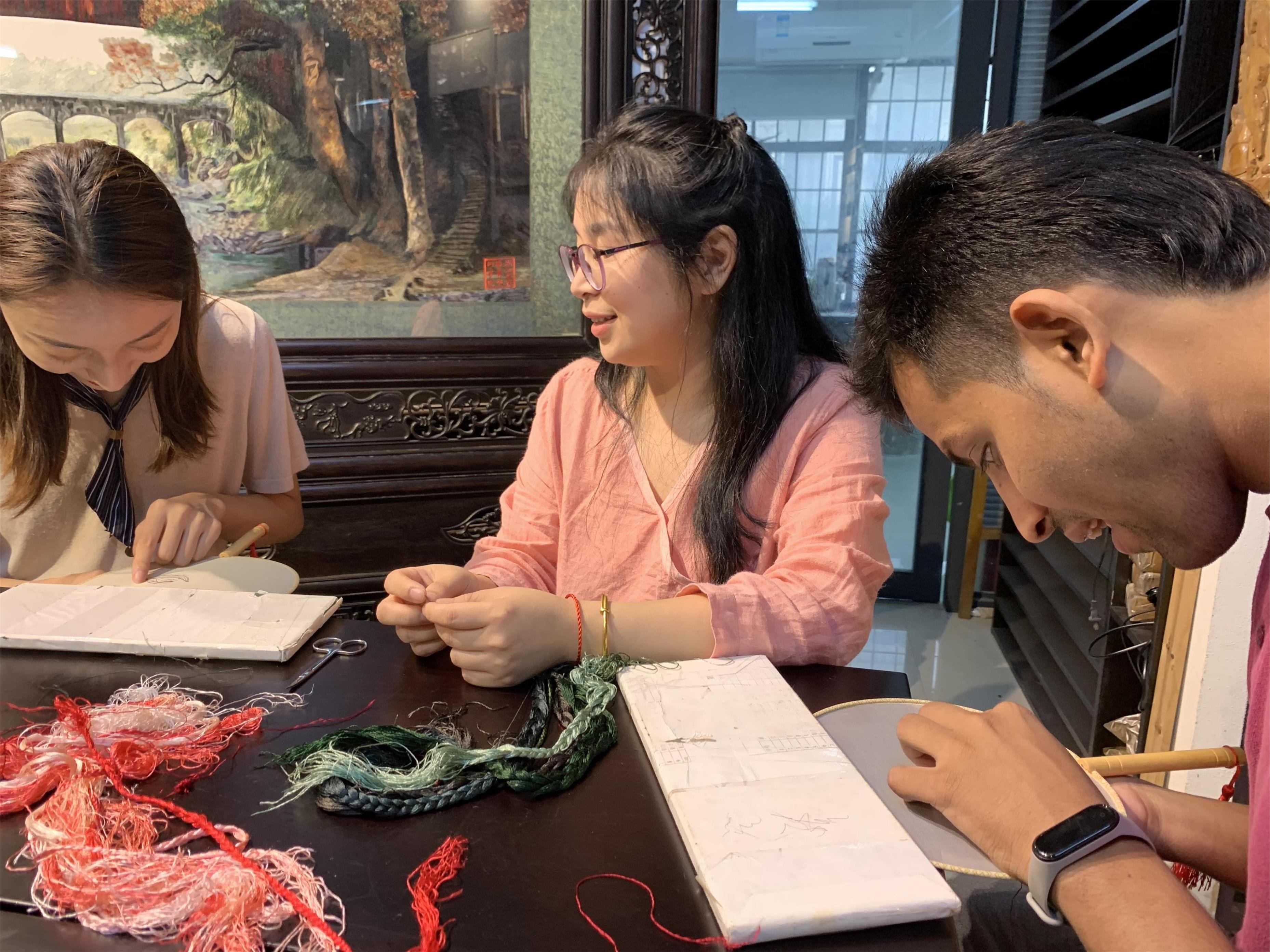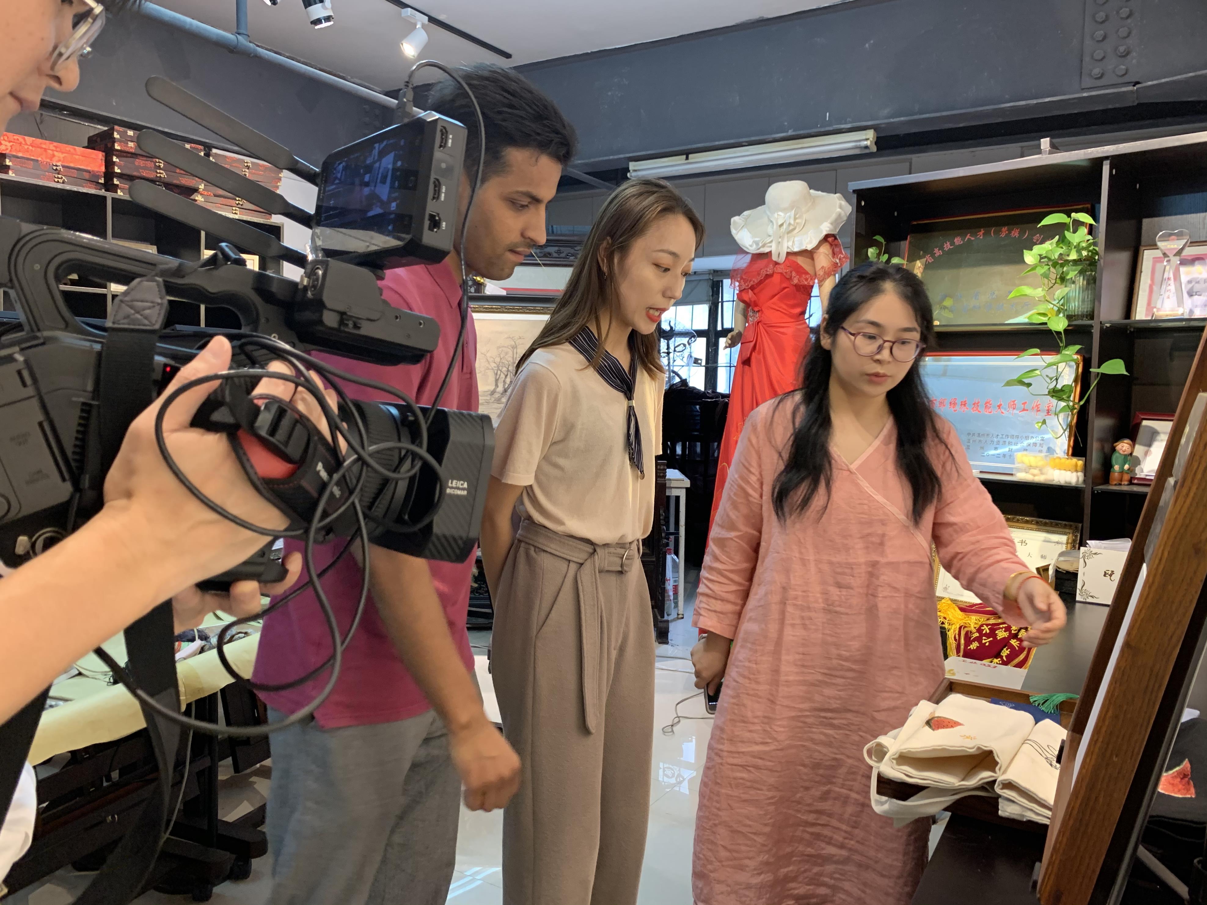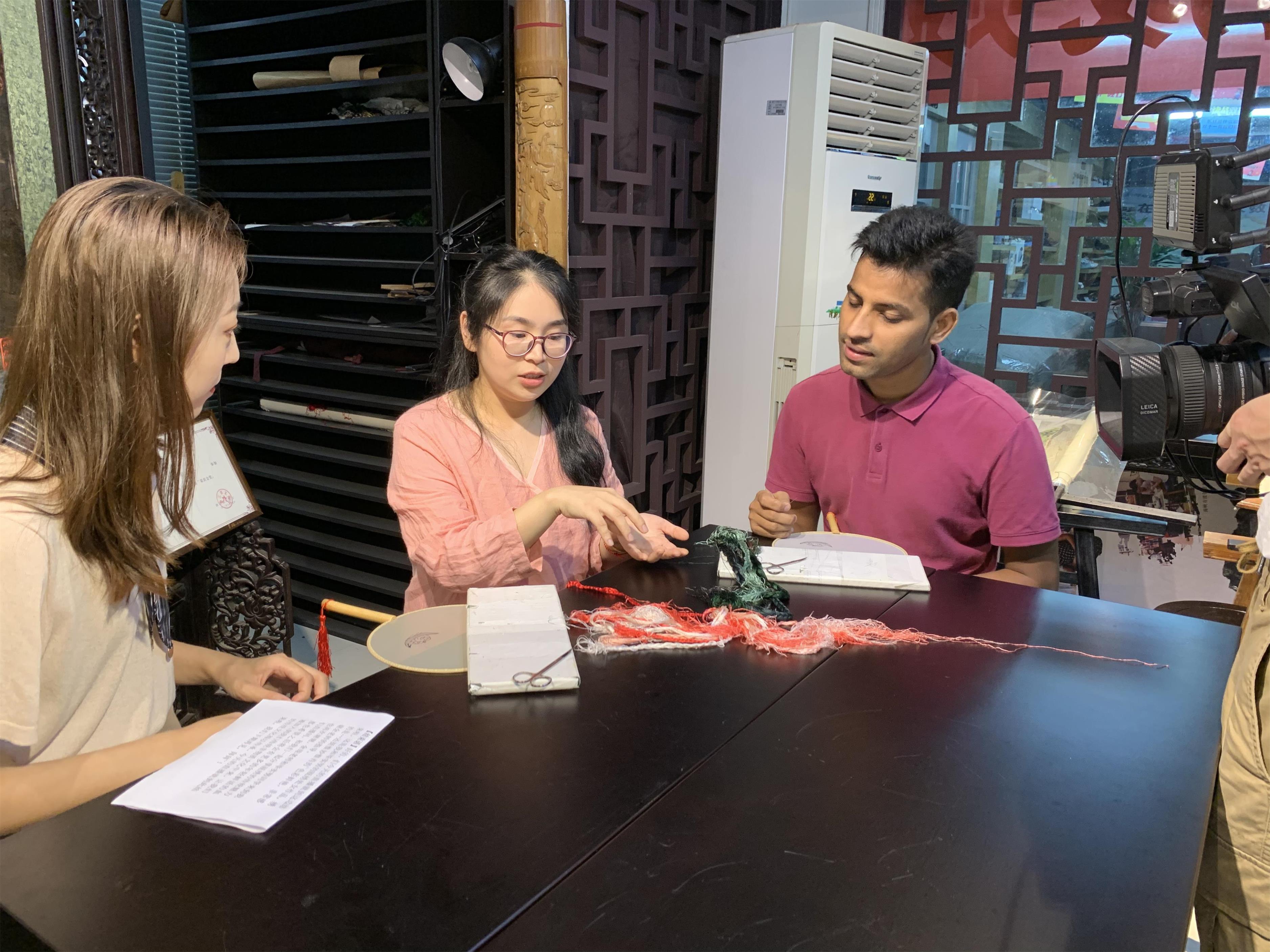 According to introduction, the “2020 Lucheng District Network Cultural Festival - The Exhibition of Intangible Cultural Heritage: Ou Embroidery” is sponsored by the Wenzhou Lucheng District Publicity Department (Internet Information Office), Lucheng District Rong Media Center, and Bureau of Culture, Radio, Film, Television Tourism and Sports in Lucheng District, and is organized by Wenzhou Overseas Media Center and Lucheng District Intangible Cultural Heritage Protection Center. BISHNU GAUTAM, the Nepalese anchor of Wenzhou Overseas Media Center, partnered with anchor from Lucheng News Center to “live-stream” the whole activity at the scene, Yu Qiong, the inheritor of Ou embroidery, led them into the Ou embroidery research room and displayed beautiful Ou embroidery works to them. Later, Mr. Yu also taught the two anchors to embroider the fans, which are engraved with the “Dragon Boat Festival”motif. BISHNU said that these Ou embroidery works are too amazing. He has always been very interested in Ou embroidery. This time is a very rare opportunity for him to experience it in such a close distance. He hopes to learn Ou embroidery from Mr.Yu in the future,.