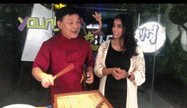 The foreign anchor Michaela also tried to play itby herself, saying "so difficult to play, but sounds good!"