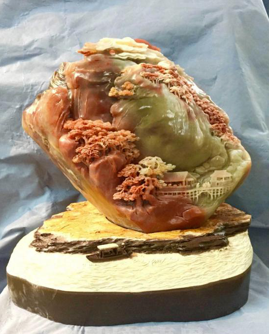 Stone-carving artists are proficient in using different colors and shapes of stones and applying traditional techniques such as hollowing-out, embossment to carve out landscapes, figures, flowers, and animals.