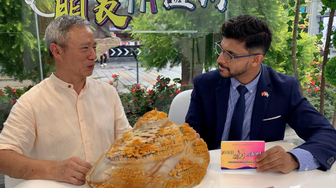On Oct. 15, Mr. Chen Shunde, the Chinese master of stone-carving, shared his 50-year stone-carving storywithBrett, a foreign anchor from South Africa, in the "Meeting·Wuma" Livestreaming Studio located on Wuma Street, Lucheng District.