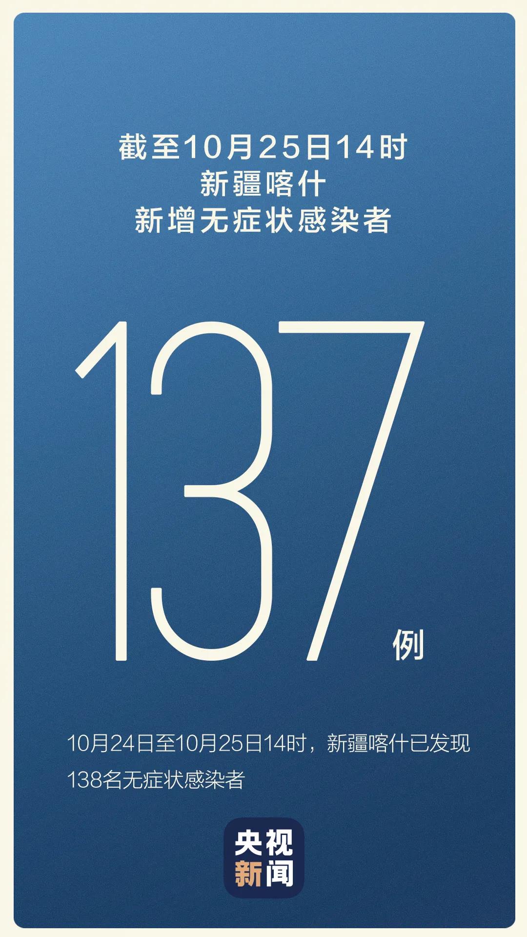 As of 14:00 on October 25, 137 new cases of asymptomatic infections were added, all of which were related to the factory where the parents of the previous asymptomatic infection were located.
