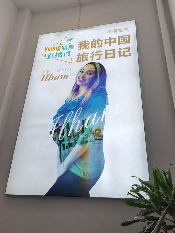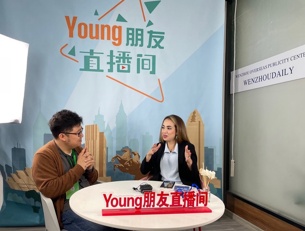 In the “YOUNG 朋友 Livestreaming Studio” of the International Communication & Social Media Influencer Center of Wenzhou City, Ilham, a social media influencer from Italy, offered a live webcast with the theme "My China Travel Diary".