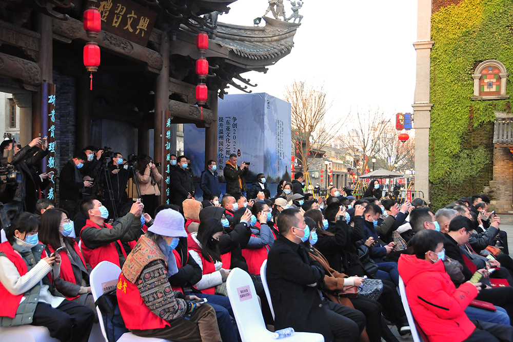 On the afternoon of Jan. 13, the launching ceremony of Publicity Month for Winning the 2022 "Culture City of East Asia" was held in front of the ancient stage on Gongyuan Road, Lucheng District, Wenzhou