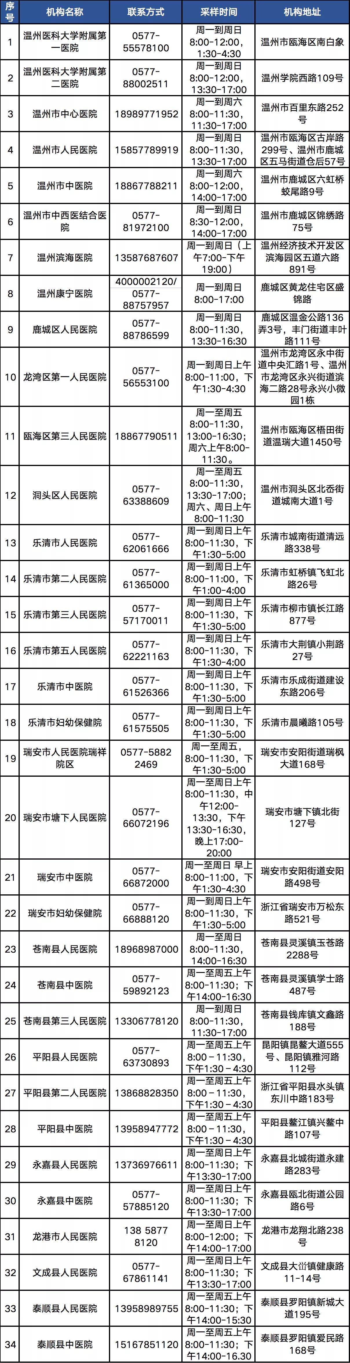 The list of Wenzhou medical institutions for nucleic acid testing was announced!