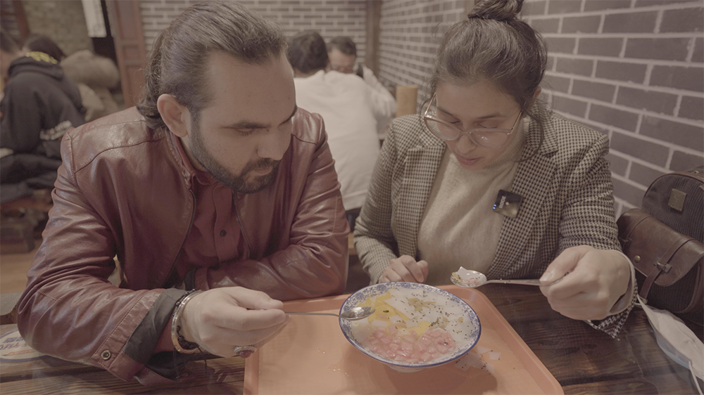 Sumayyah & Hamad, the protagonists of this video, said that they have decided to stay in Wenzhou this year during the Spring Festival, and they really like to take a stroll at Gongyuan Road. During the video-shooting, Sumayyah visited the specialty shops on Gongyuan Road and ate the Wenzhou local snack- almond Jelly. She exclaimed: “Wenzhou has so many places worth visiting, especially Wuma Street and Gongyuan Road. I have already felt a strong atmosphere of Chinese New Year. I like it so much!"