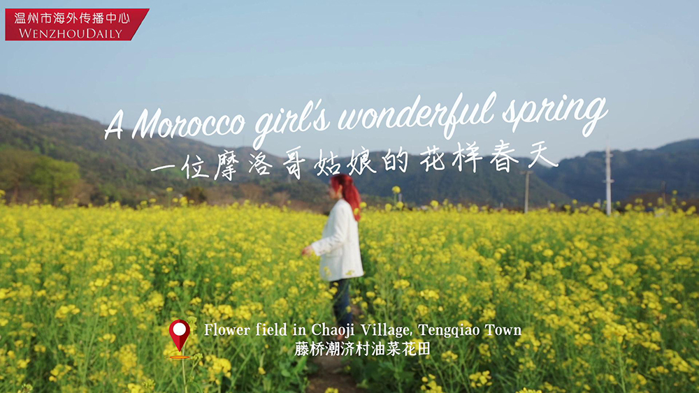"I like spring the most. I didn't expect that in the outskirts of Wenzhou, it would be so poetic." Recently, Ilham, a foreign anchor from Morocco, said to the camera lens while checking out the canola flower field and fruit garden in Tengqiao Town, Lucheng District, Wenzhou .