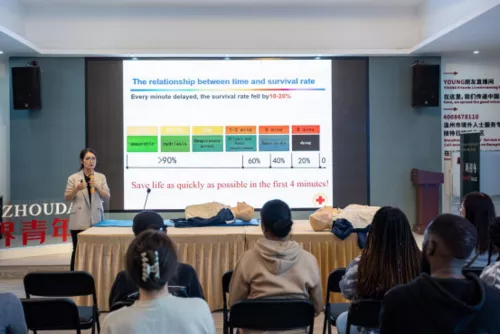 "The teacher gives a very detailed lecture on CPR first aid knowledge, which is actually practical in our daily life, and it’s taught in English. So great." On the evening of Oct. 26, 20 international friends from many countries, participated in a first aid knowledge training at Wenzhou Overseas Media Center. The event was co-sponsored by the Wenzhou People's Association for Friendship with Foreign Countries, the Publicity Department of CPC Lucheng District Committee and Wenzhou Overseas Media Center. And the training was taught in English by Zhu Xiaoling, a first-class trainer from the Chinese Red Cross.