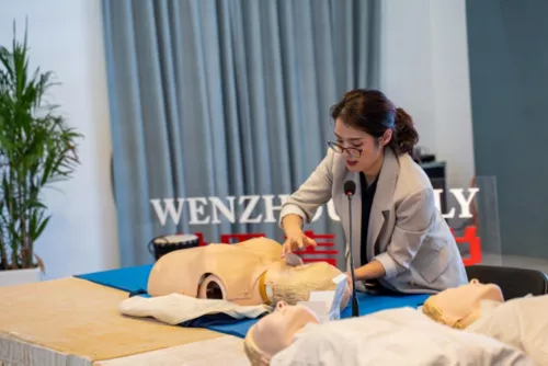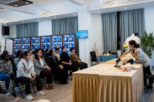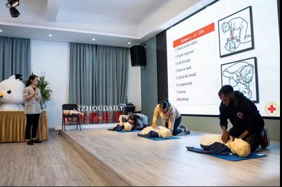 During the event, Ms. Zhu explained the importance of learning CPR first aid knowledge, "Before the ambulance comes, we must make full use of the critical rescue time, the first 'golden 4 minutes'". Then she described the specific steps of CPR, step by step in great detail. After the introduction, Ms. Zhu used a model to teach on the spot, and the foreigners enthusiastically participated in the hands-on exercises. "Learning and mastering CPR, a life-saving technique, can save most lives at critical moments. The aim of this training is not only to learn life-saving skills, but also to learn self-help skills. It’s valuable and meaningful." said Ms. Zhu.