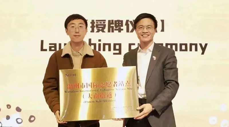 At the event, Danan Sub-district in Lucheng was awarded a plaque inscribed "Wenzhou International Volunteer Service Site".