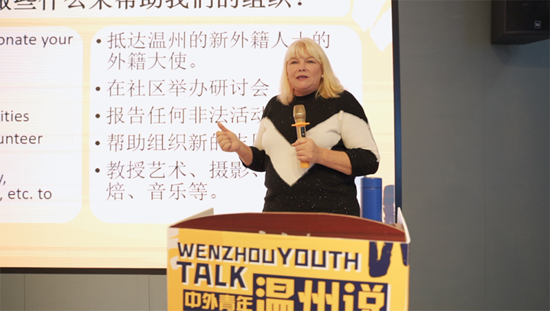 Kimberly, an associate professor from Wenzhou University, brought a flag to the salon. Kimberly said she has lived in Wenzhou for more than 10 years and received a lot of helps. Wenzhou people have provided her and other international friends in Wenzhou with a home, so they are happy to volunteer to give back to this gracious city and its people. This is one of the reasons she made the decision of being a founder of Wenzhou International Volunteer Team.