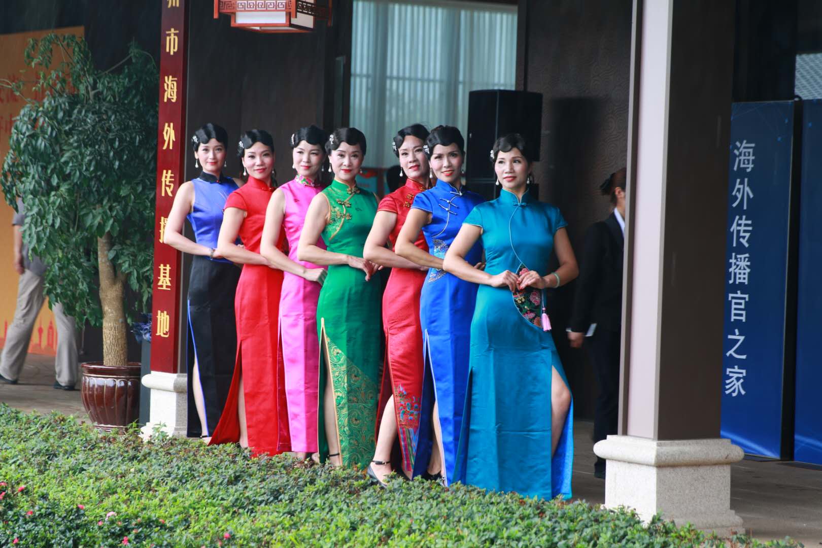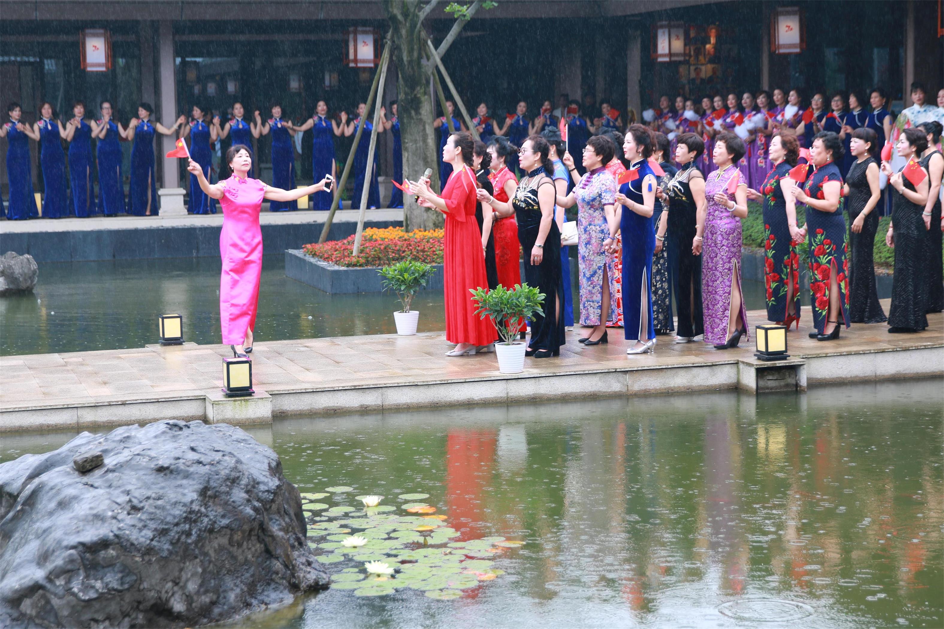 Among the 300 people performing yesterday, there are Wenzhou overseas Chinese from Germany, Portugal, France and other countries and regions, as well as local cheongsam-enthusiasts in Wenzhou. In order to carry out the recording of the flash program "The Song of the Yangtze River", WenzhouDaily even arranged for them to record the program in the studio of the radio station. At the beginning of the event at 2 o'clock in the afternoon yesterday, 300 women wearing various colors of cheongsam surrounded the gallery of the overseas publicity base and sang "The Song of the Yangtze River". Through the lens of the photographer and the camera, the charm of the cheongsam was stunning the whole city.