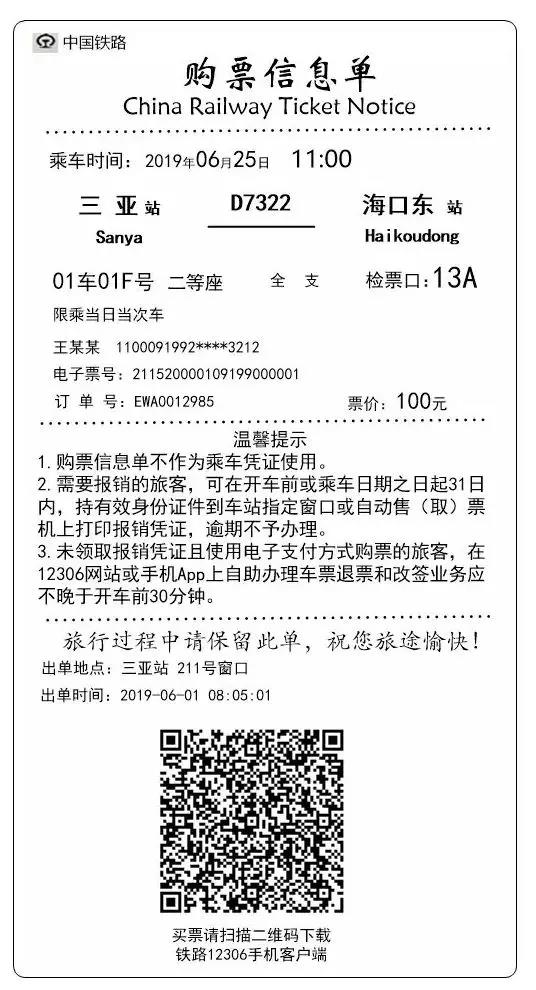 (1) Passengers who purchased E-tickets through the 12306 website (including mobile APP) could check the seat information at the 12306 accounts, or obtain the information by printing the ticket information sheets at the ticket windows or the automatic ticket vending machines.