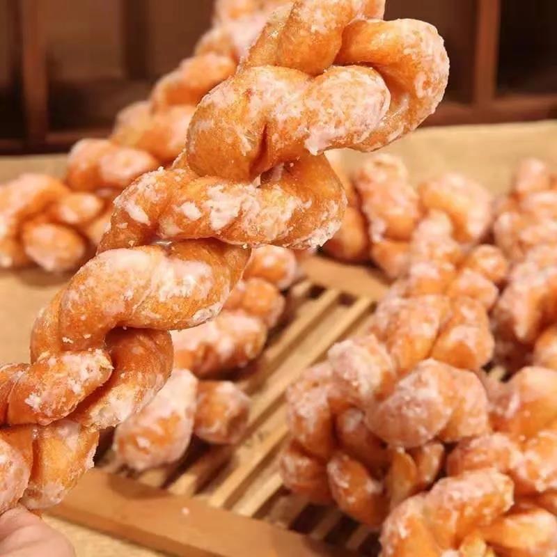 The Sweet-fried-dough-twist is called as “Daogansheng” by Wenzhou people. It’s produced by following steps. Put the wheat flour and other auxiliary materials to ferment. After the fermentation, the dough needs to be kneaded. Then the dough should be sliced into strands of stripe-shaped noodles. Two or three of them get twisted together. After frying in oil, it should be put into melted crystal sugar to stir well. Now, a fresh sweet-fried-dough-twist comes into our sights with golden color, crispy and sweet taste.