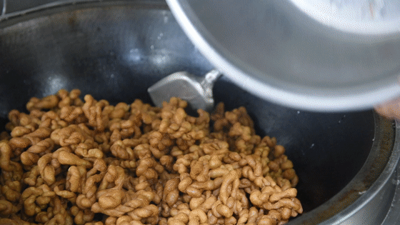 The process of making maltose is more complicated, especially sugaring. The whole sugaring process is like a martial arts master doing his training. The authentic Wenzhou maltose is very light. When we take a bite, the aroma of fried rice noodles rushes to our tongues at first, then the special sweetness of maltose is followed.