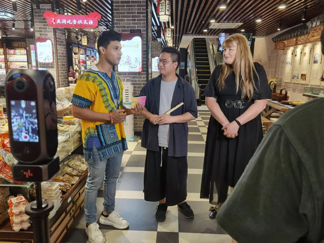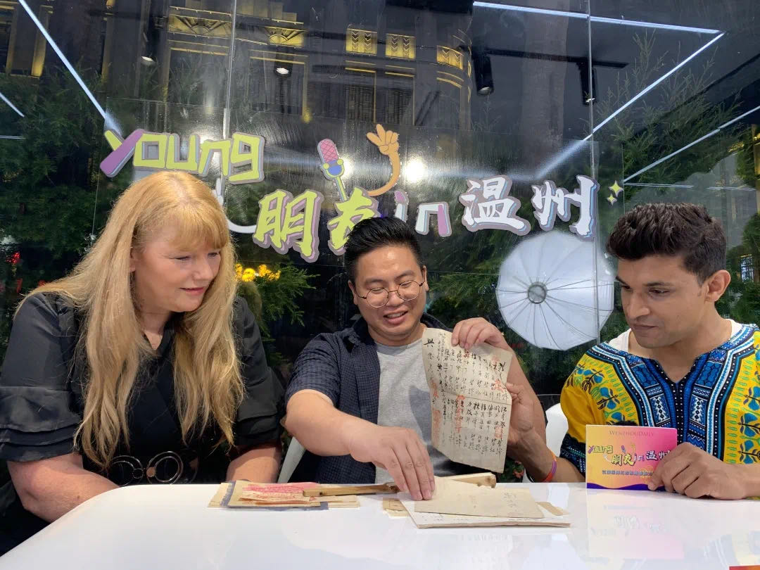 On the evening of July 29, Brett Lyndall Singh from South Africa, Kimberly from the United States and Wenzhou folklore expert Zhu Ming promoted Wenzhou’s traditional culture to the people at home and abroad by the way of livestreaming in the "Meeting· Wuma" livestreaming studio based in the central square of the Wuma Historical and Cultural District, Lucheng District, Wenzhou City.