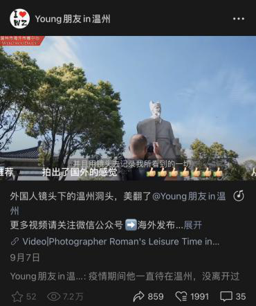 The overseas communication group’s tour around Wenzhou organized by column "Young朋友in温州" has been halfway done. They have visited Dongtou, Wencheng, Taishun, Cangnan, Pingyang and other counties successively, showing the charms of characteristic cultural tourism projects within these counties (cities, districts) in the forms of bilingual video-filming & graphic display.