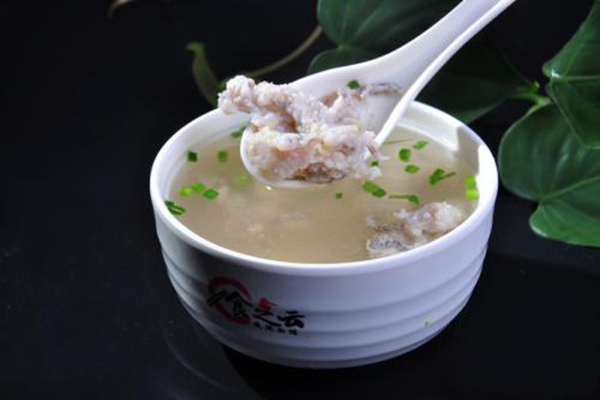 Fish Ball Soup: A famous local snack in Wenzhou. Mix the boneless fresh fish meat, shredded ginger, spring onion, and flour and make into balls. Boil the fish ball in the boiling water.