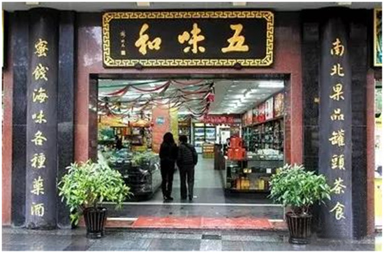 "Wuweihe" was established in the eighth year of Emperor Guangxu (A.D.1882) of the Qing Dynasty (A.D.1636-A.D.1912). At that time, Yang Zhengyu, a businessman from Cixi, Ningbo who came to Wenzhou for business, co-established the “Wuhe” glazed fruit store with his fellow-villager, Feng Bozhen. Mr. Feng was a friend of Mei Tiaoding, a celebrity in the late Qing Dynasty (A.D.1840-A.D.1912). So Feng asked Mei to write a recruitment notice for him. Mr. Mei pondered again and again, and added a "Wei" between "Wu" and "He", which meant the combination of sweet, sour, bitter, spicy and salty. It not only had a phonological harmony, but included the feature of the operation of the products. Its former address was in the west of Mantou Alley (present Gulou Street) in downtown with three storefronts.The store with a couplet "Glazed fruit, sea food and various medicated wines; Fruit, cans and sea & food from the north and south areas" at the both sides,and a shop sign named "Wuweihe" on the lintel of the door. (Moreover, a blue stone engraved with the three original characters "Wuweihe" by Mr. Mei was embedded into the nave of store, which displayed a boldness of vision). Also, in the 32nd year of Emperor Guangxu (A.D.1906) of the Qing Dynasty (A.D.1636-A.D.1912), Yang Zhiqin, son of Yang Zhengyu, succeeded his fathers' business and set up a new "Wuweihe" glazed fruit store in Wuma Street.