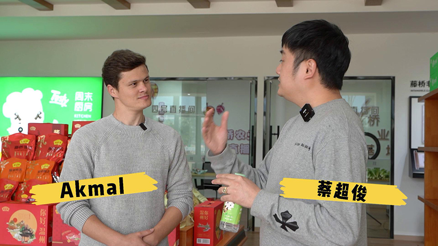 Akmal, a foreign anchor from Wenzhou Overseas Media Center, said: "It’s a rare experience that I eat these fresh agricultural products at Tengqiao. The countryside scenery here also reminds me of my hometown. It brings the old memories back to me! What an amazing experience for me!"
