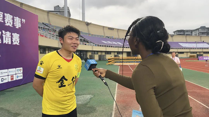 After the football match, international friends interviewed the players in the mixed interview area. Jan, a Mozambican student from Wenzhou University, said, "I love football very much, and I’m very happy to be invited to watch this wonderful football match. And I didn't expect to have the opportunity to interview the players face-to-face, I’m really excited, it’s an amazing experience!"