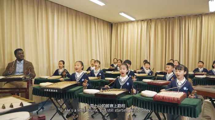 The performers sing folk tales and historical stories in local dialect, and the tunes are simple but melodious. How fascinating they are! Percy, who has lived in Wenzhou for more than ten years, has always heard this riveting tune on Wenzhou’s streets and lanes, and his love for music has naturally led him to arouse interest in this art form which has a strong local characteristics. When he was told that Wenzhou Experimental Primary School has a club dedicated to learning Wenzhou Guci, Percy came there to learn it with Miss Zhou Xiaoqiu and the children.