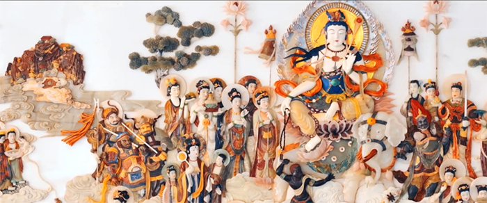 Colored-stone Mosaic is an artwork created by taking natural pyrophyllites as raw materials, then processing them into pre-designed patterns and inlaying finished patterns onto mahogany or camphor wood. To complete such a piece of artwork, craftsmen have to go through a total of 15 processing steps such as tone-collecting, stone-cutting, pattern-designing, carpentering, painting, colour-matching, shaping, splicing, carving and gluing .......