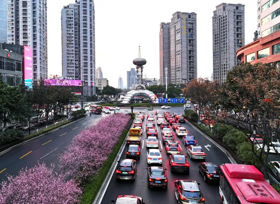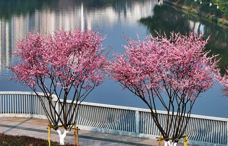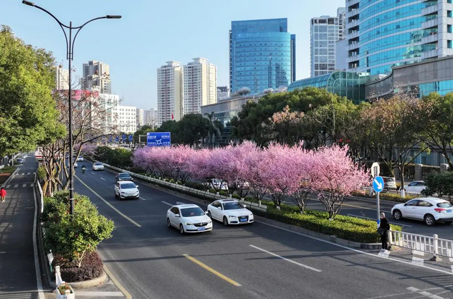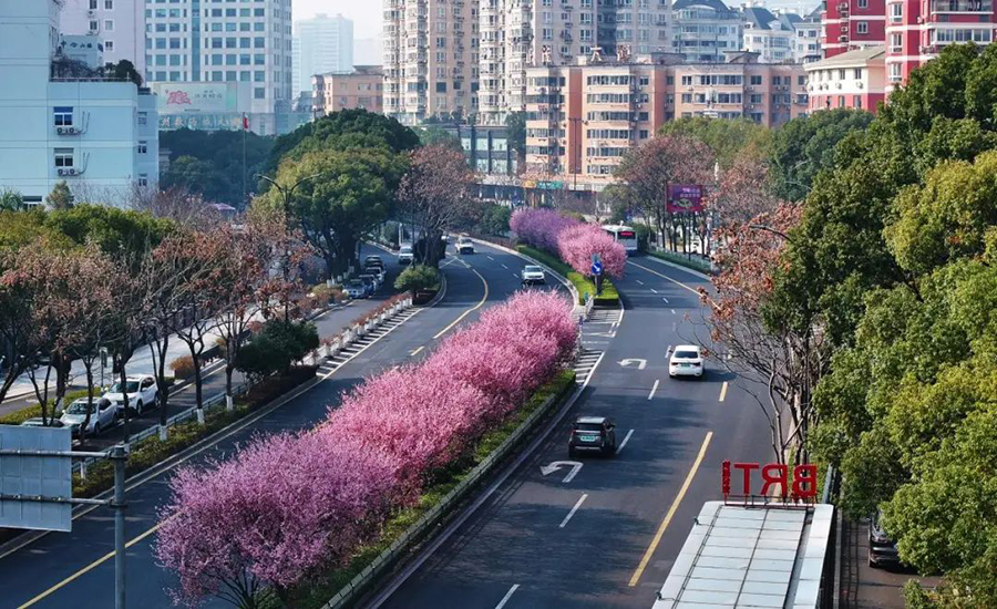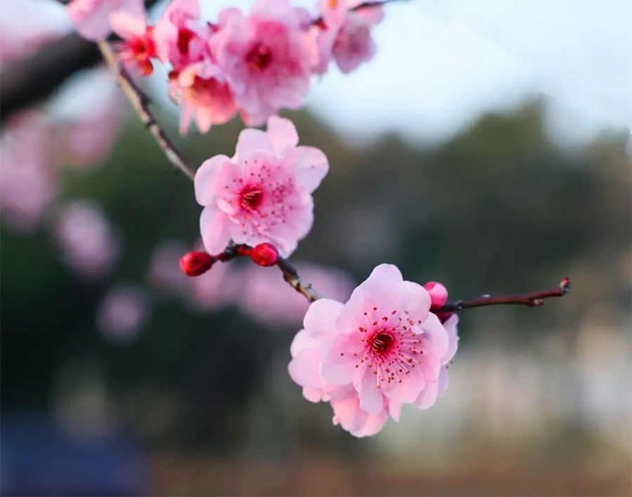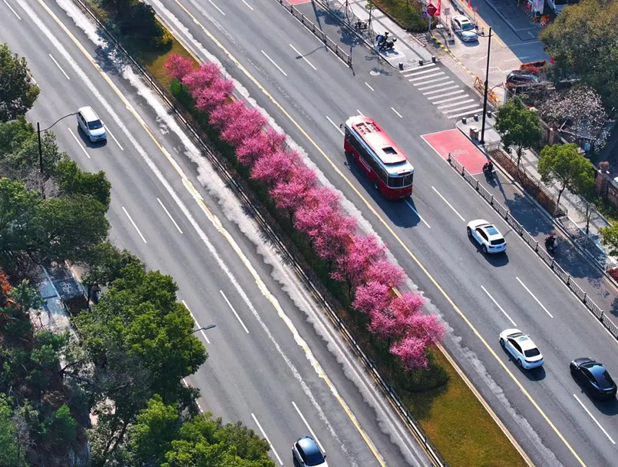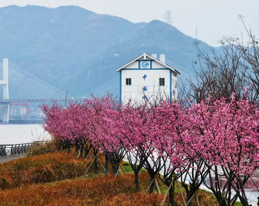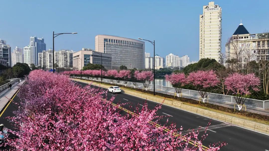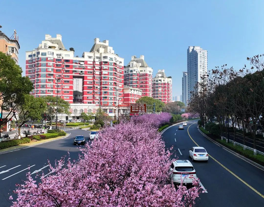Mid-March finds Wenzhou adorned with around 2,000 beauty plum trees blooming along major thoroughfares such as Fudong Road, Xincheng Avenue, Jinxiu Road, Nanpu Road, Niushan Road, Guojing Road, and Qidu Avenue. Year after year, these floral sentinels honor their seasonal pact, their falling petals dancing with spring breezes. These beauty plum trees embrace the entire city, resembling pretty girls "lowered brows and blushing faces whispering shyly" as they orchestrate the poetic spring symphony of Jiangnan's grace and Dong'ou's picturesque charm.