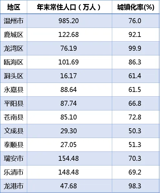 Major Population Data of Wenzhou and Its Counties (County-level Cities/Districts)