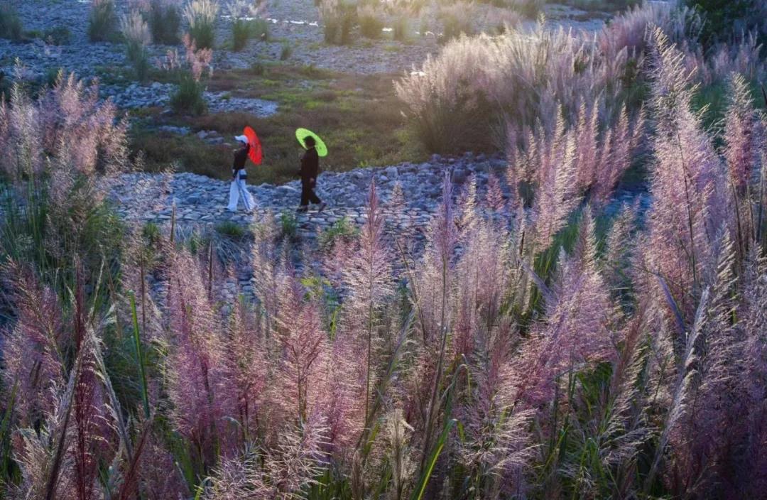 Now is the best time to enjoy the herbaceous flowers. These pink flowers bloom like feathers, light and splendid. A kind of beautiful rose- gold is displayed under the light and shadow. Half of a month later, the grasses will turn white, and another different kind of intoxication will be seen at that time!