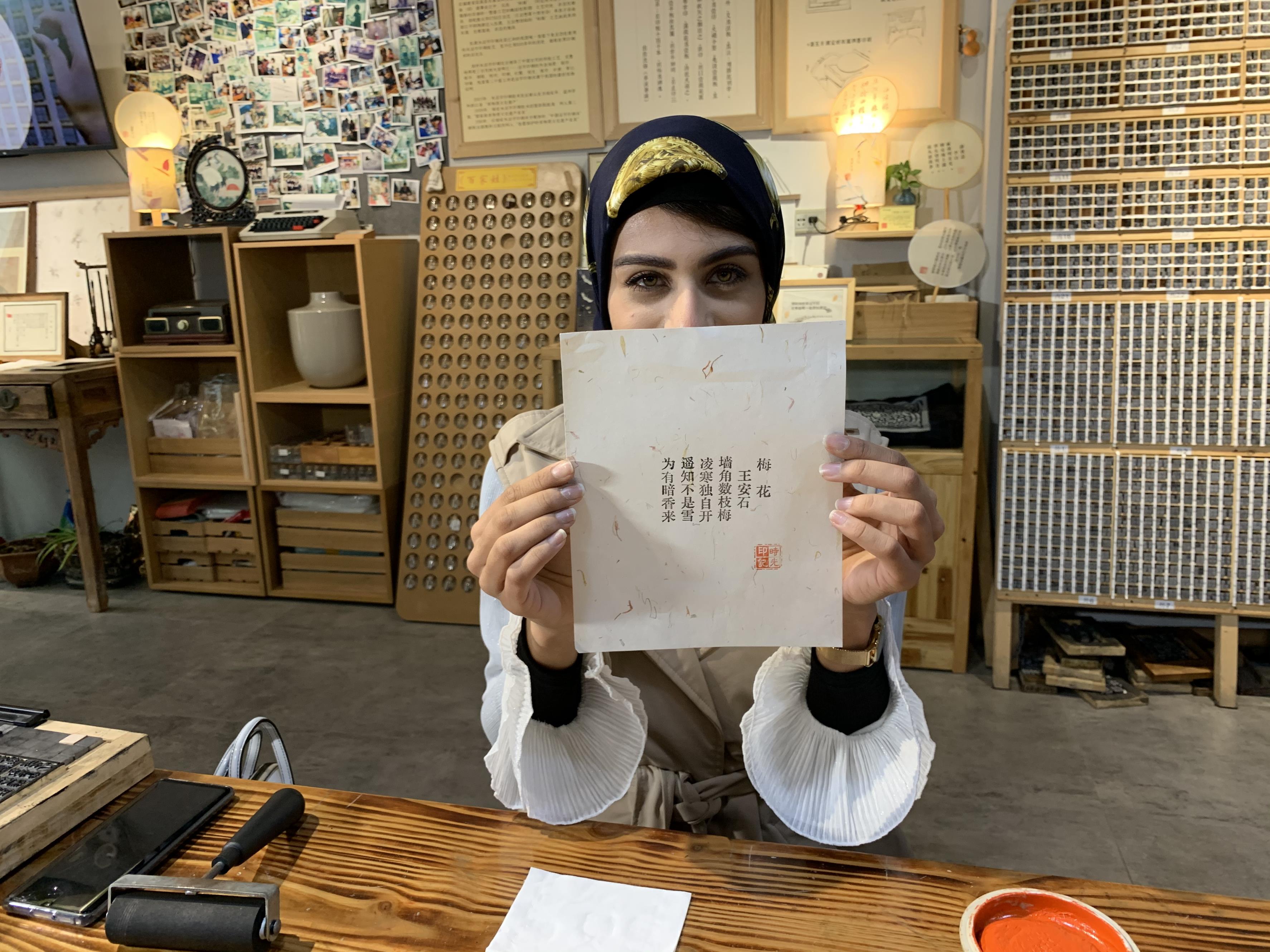 WenzhouDaily’s hit show “Foreigner’s Spotlight” invited Walaa from Bahrain to experience the movable-type printing.