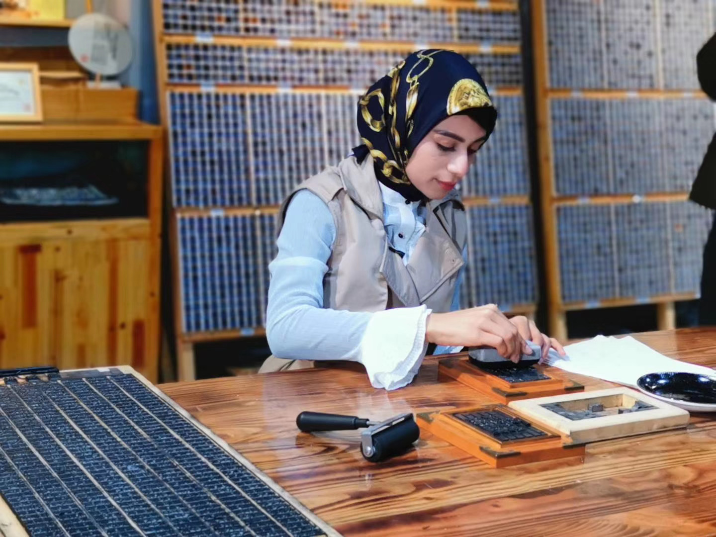 WenzhouDaily’s hit show “Foreigner’s Spotlight” invited Walaa from Bahrain to experience the movable-type printing museum together and to explore the charm of this printing method.