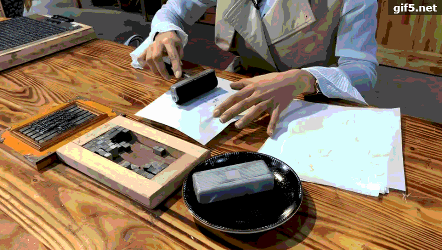 Step four, cover the slate with paper, and let the ink roller to roll back and forth to print the ink on the paper. Then take paper away to finish the printing process