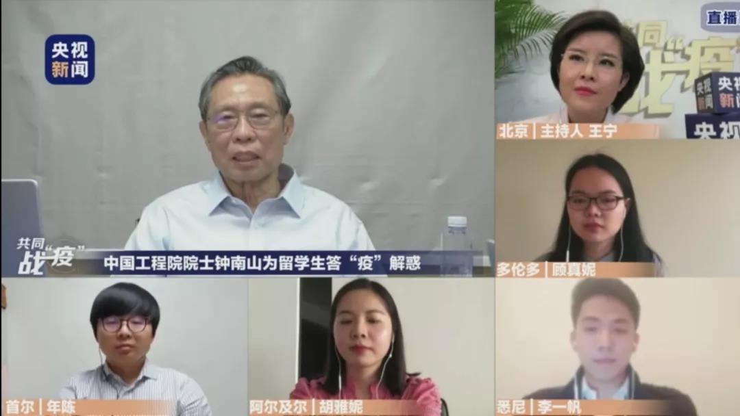 At 8:00 pm on May 4, the Ministry of Foreign Affairs and the National Health Commission jointly invited Zhong Nanshan, an academician of the Chinese Academy of Engineering, to connect with international students studying in China and answer their questions about the "epidemic outbreak".
