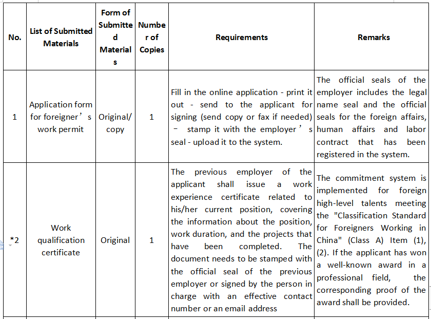 The Classification of applicants and the Application Materials for Foreigner’s Work Permit in China.
