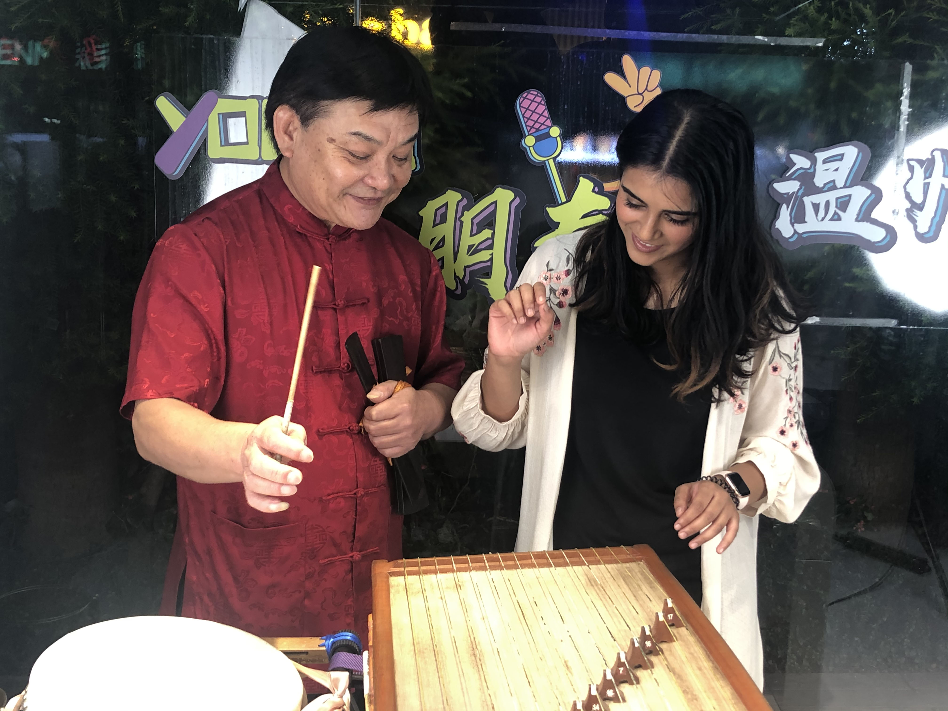 The foreign anchor Michaela also tried to play itby herself, saying "so difficult to play, but sounds good!"