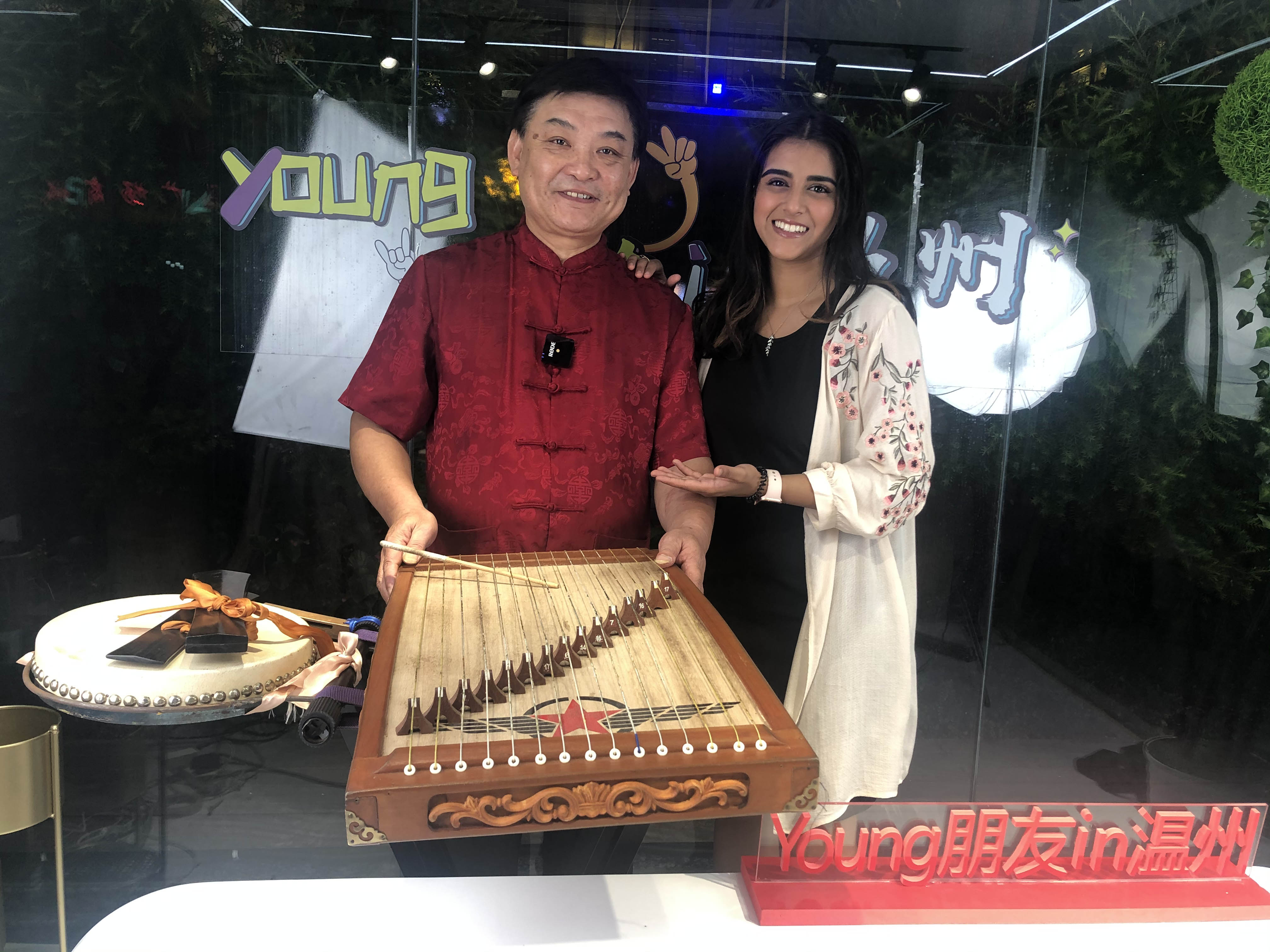 Mr. Chen Xiangming introduced the background of Wenzhou Guci to the audience joining in the livestreaming event and showed them the Guci musical instruments: NiuJin zither, Yunban, and Flat Drum.