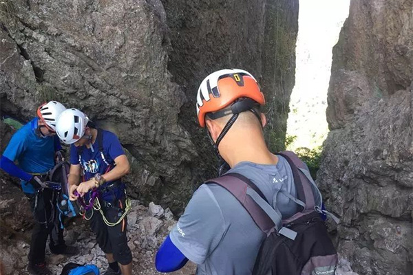 Fei Lada is the transliteration of the Italian word Via Ferrata, meaning the rock-wall expedition or the iron road. It refers to the climbing track constructed on the mountain surface, which consists of iron handrails, ladders, fixed cables, rock plugs, and foot mats. It allows climbers who know nothing about climbing to climb up the steep walls with the equipment.