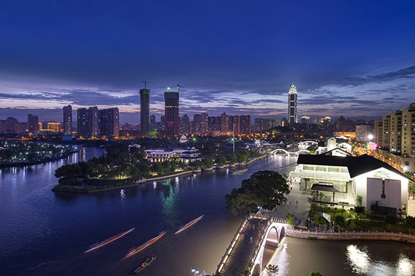 Nantang Street is really really beautiful in the memory and impression of old generations of Wenzhounese. Those beauties were emerged on the flagstone road, under the banyan tree, on the river quay, under the old eaves. A bountiful of travelling merchants had once visited here, a large number of ships had once been docked here, a lot of tofus had once been produced here. Now, these memories of old times is getting waken up again gradually. "Impression Nantang" is constituted by north section of Fengmao District Nantang Street and cultural village of Bailuzhou Garden. These two places get integrated as a whole perfectly by two landscape bridges located in the middle. The north section of Fengmao District Nantang Street is located on the riverside of Wenrui River, which starts from Jinxiu road and ends to Hualong Bridge with total covering an area of 38494 square meters. Walking into the north section, the remaining traces of Nantang customs infuse your whole view with its simple pebble walls, narrow alleys, triple colors(black-white-grey) and Nanxijiang-style buildings.
